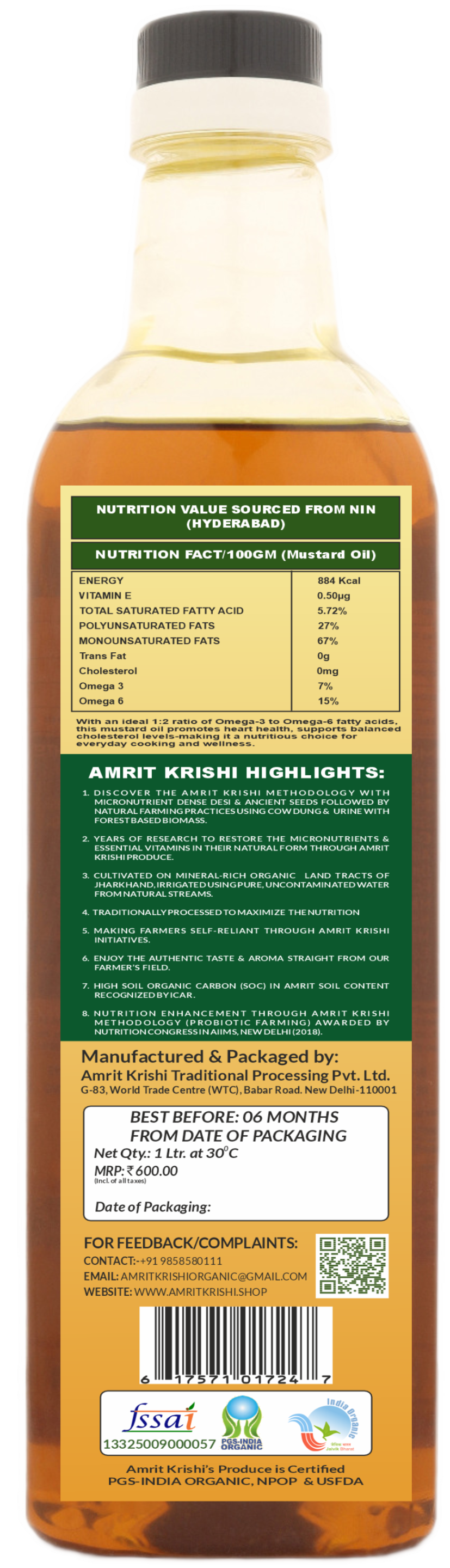 This organic mustard oil makes an excellent addition to salads, curries, pickles, and various other Indian dishes. The cold pressing technique preserves the oil’s purity and strong mustard flavor. For the best taste and nutritional purity, shop for our organic cold pressed mustard oil online now. Experience the nostalgic aroma and vibrancy of quality organic mustard oil crafted just like it has been for generations.